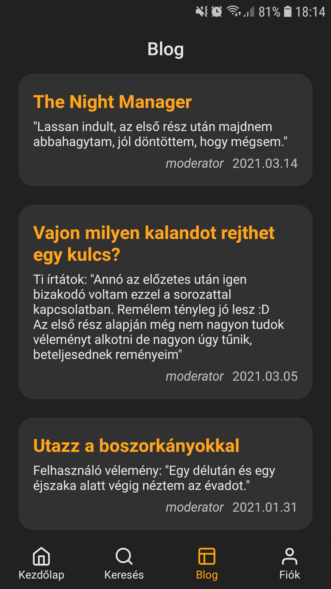 • Open videos in the installed video player / Puremotion integration • Fix flash of white at navigation • Show highlights on homepage • "displayName": "Sorozatbarát"